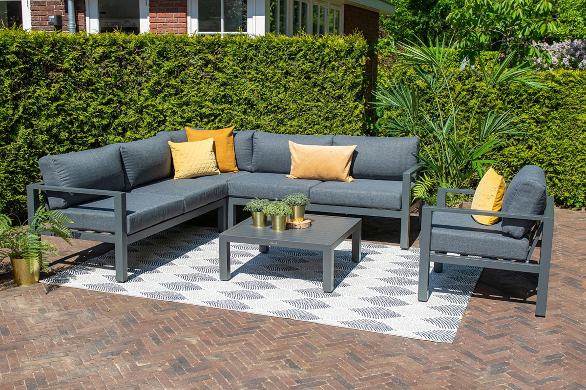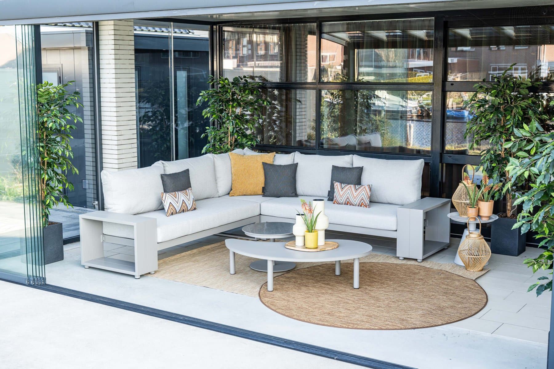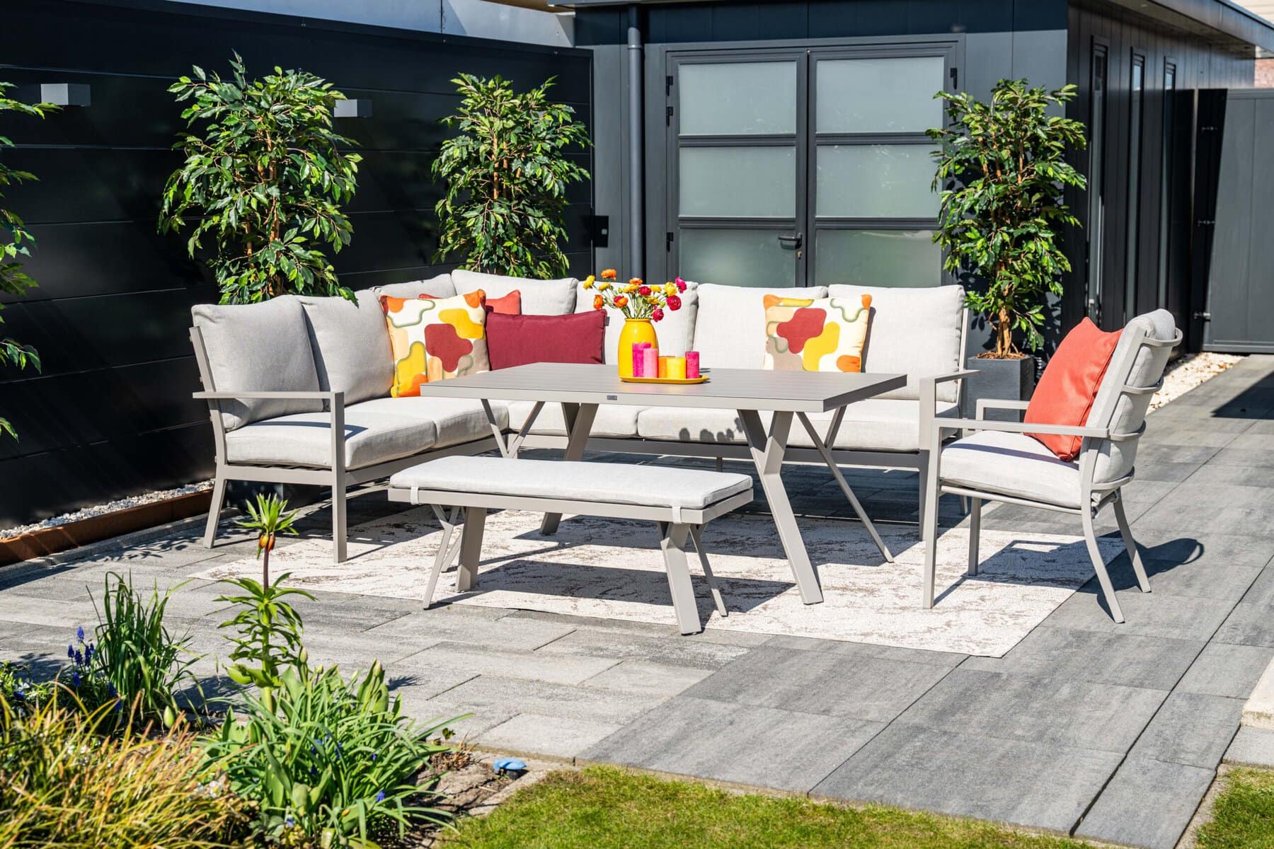Entspannen Sie auf unseren komfortablen Lounge Garnituren im trendigen Alu Look. Handgeflochtenes robustes Geflecht & Rope kombiniert mit wetterfesten, abzieh- und waschbaren Kissen. Auch in den Alu Teak Ausführungen ein optisches Highlight für Ihren Außenbereich.