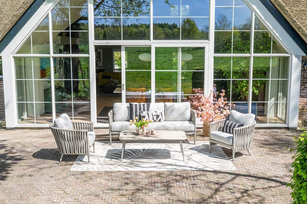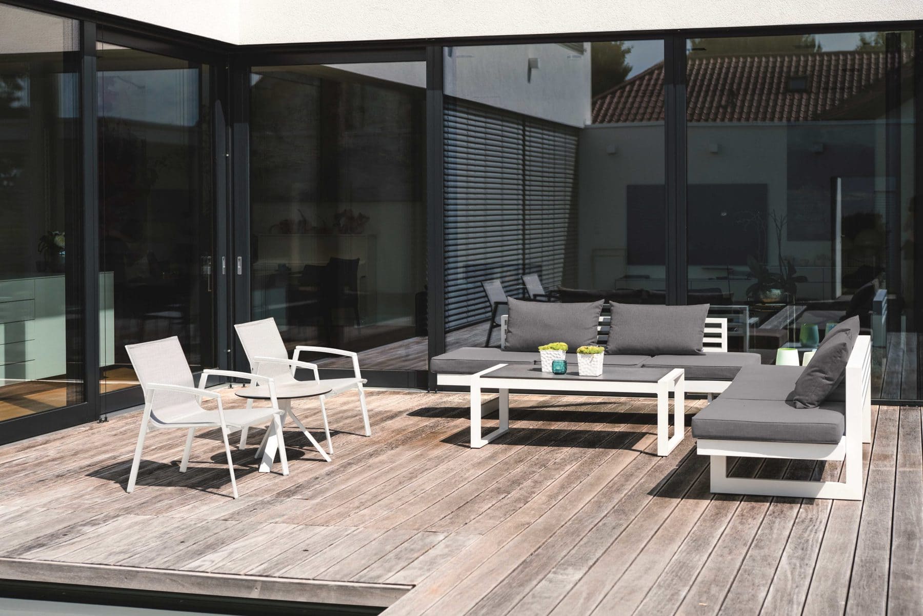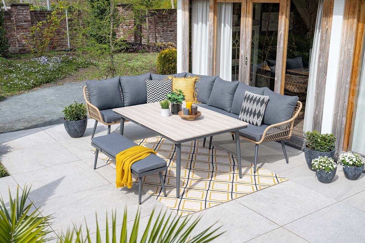 Entspannen Sie auf unseren komfortablen Lounge Garnituren im trendigen Alu Look. Handgeflochtenes robustes Geflecht & Rope kombiniert mit wetterfesten, abzieh- und waschbaren Kissen. Auch in den Alu Teak Ausführungen ein optisches Highlight für Ihren Außenbereich.