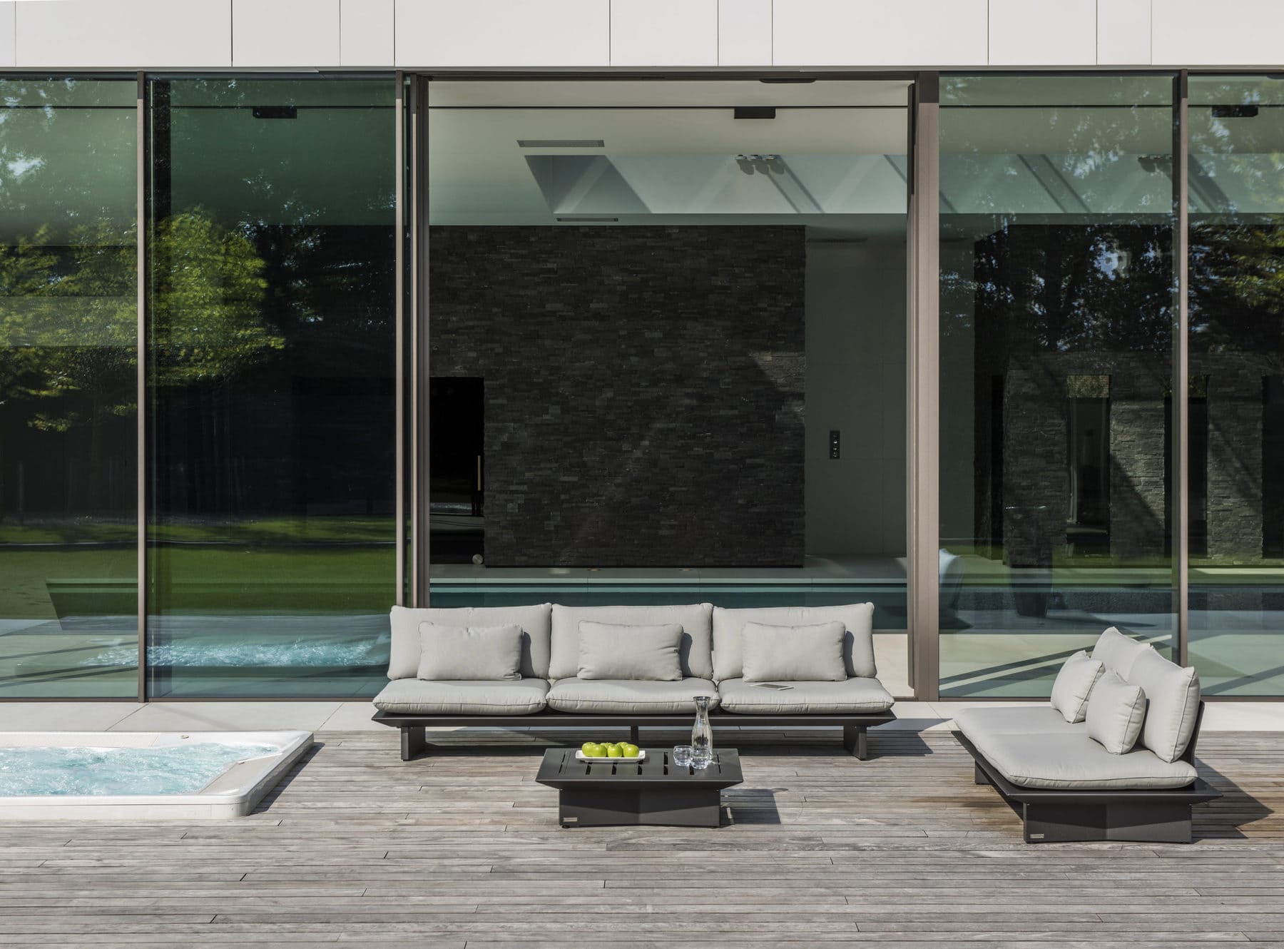 Ess Lounge Alu graphit Sofa 216x80cm,  Rückenkissen,  Sessel,  Tisch auf Anfrage.