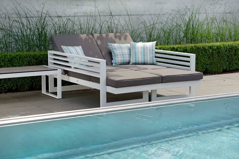 Daybed Alu Sand, Kissen beige ca. B. 200 x 200cm.